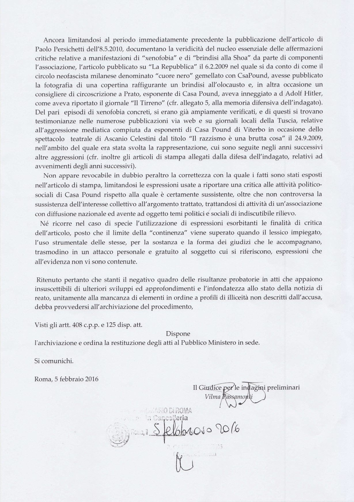 Archiviazione 3 Published 5 febbraio 2016 at 1229 × 1743 in CasaPound «un’associazione che vuole rilanciare il Fascismo». Il Gip di Roma ridimensiona l’informativa del Viminale