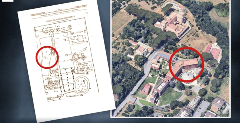 Nel 1978 non c’era nessun cantiere della Loyola university sul sito delle suore domenicane di santa Caterina da Siena in via dei Massimi 114a. La notizia, diffusa dal giornalista di Rai News Federico Zatti in una doppia inchiesta televisiva (qui e qui), è falsa. Secondo Zatti, sponsorizzato da Bruno Vespa in due successive puntate di Porta a Porta, nell’edificio – a suo dire ancora in costruzione nel marzo 1978 – si sarebbero trovati i locali della prima prigione di Aldo Moro (forse l’unica, Zatti resta incerto sul punto), dove questi sarebbe stato condotto nei momenti immediatamente successivi al suo rapimento da parte delle Brigate rosse, il 16 marzo 1978. La struttura avrebbe aperto i battenti nell’ottobre successivo per ospitare i corsi della filiale romana dell’università dei gesuiti, fondata a Chicago nel 1870. Filiale romana che ha poi preso il nome di John Felice Rome center. Nella sua psichedelica ricostruzione Zatti ha sostenuto che alcune strutture della Loyola university e del vicino convento delle suore domenicane, oggi ubicati in due diversi civici, il 114a e il 114b, collimerebbero con una piantina, attribuita a Valerio Morucci, ritrovata nell’aprile 1978 all’interno della base brigatista di via Gradoli a Roma, dove Morucci viveva con Adriana Faranda prima di lasciarla a Barbara Balzerani e Mario Moretti, dopo un imprevisto (furto dell’auto di Moretti) che nell’aprile 1977 aveva spinto i due ad abbandonare precipitosamente l’appartamento di via Vittorio Poggi, nella zona del Casaletto.