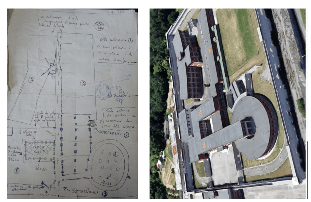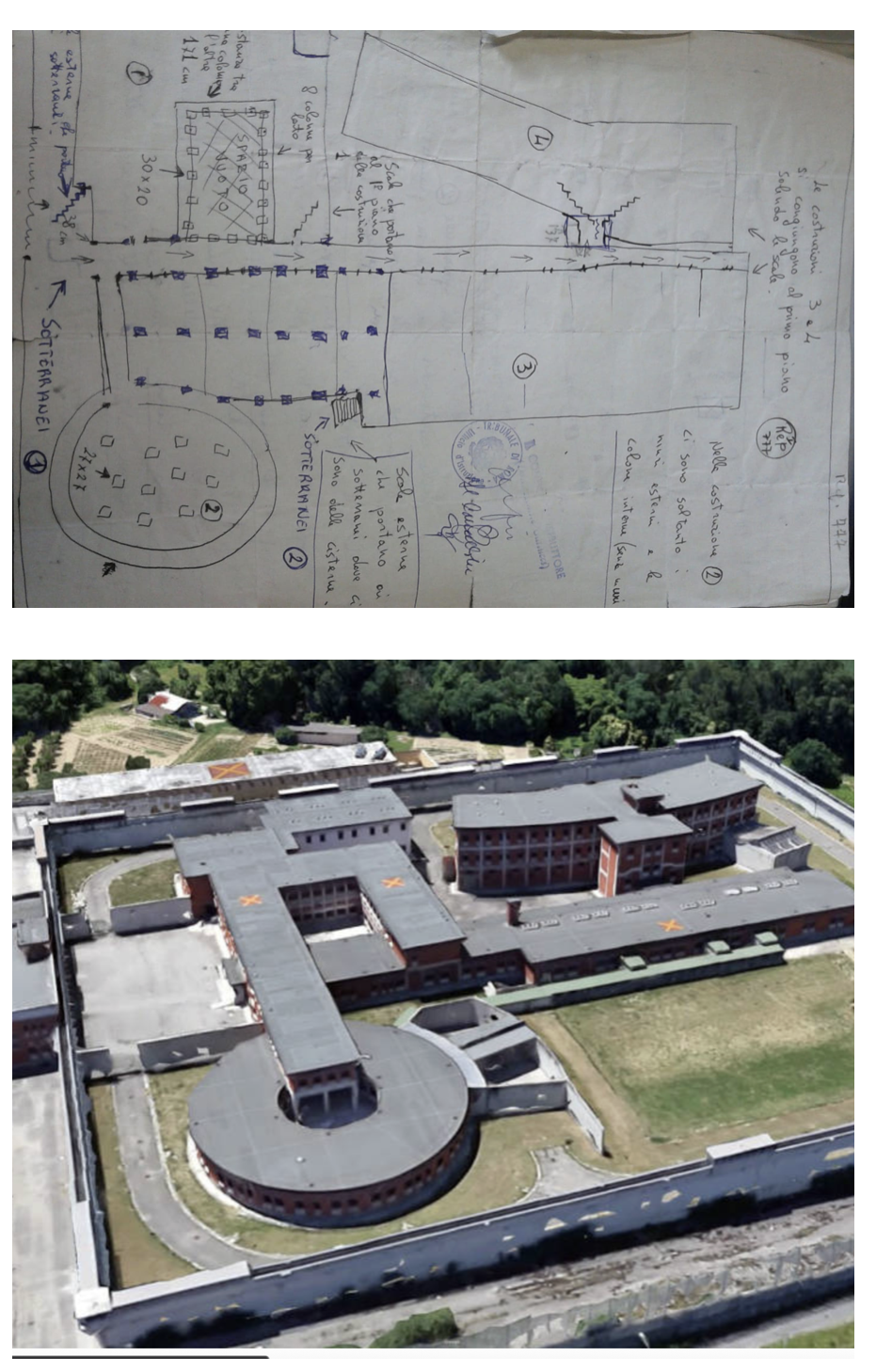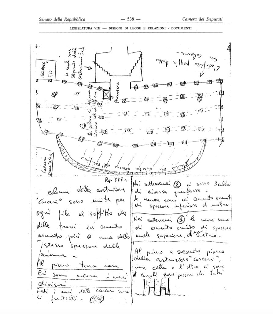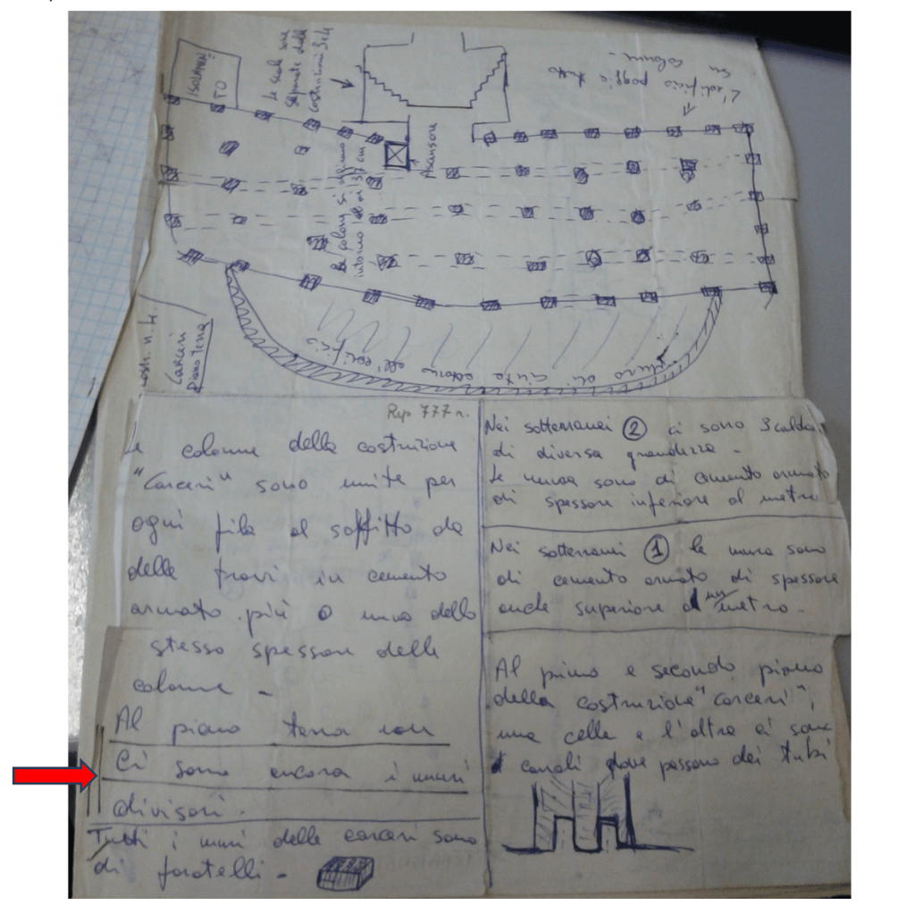 «Lo schizzo rinvenuto nel covo Brigate Rosse via Gradoli riguarda sicuramente costruendo istituto carcerario Ascoli Piceno. […] Lo schizzo è stato effettuato sul posto probabilmente inizio 1977 et cioè quando erano ben visibili pilastri et non esistevano alcuni locali».