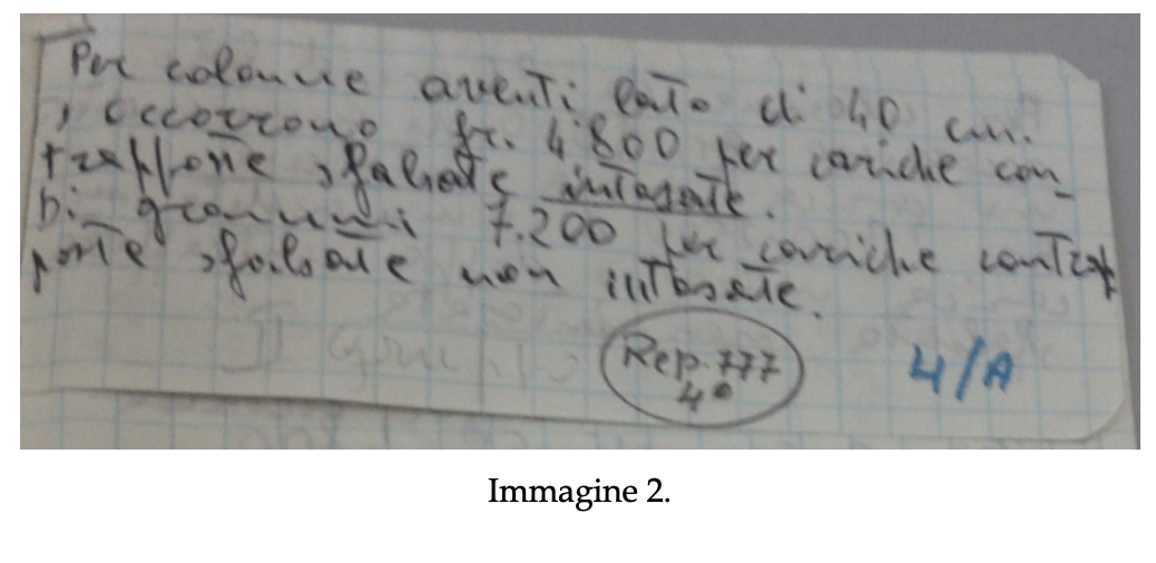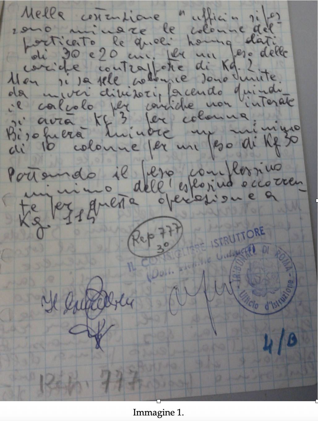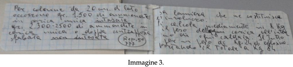 Nella prima immagine, si fa riferimento alla possibilità di minare le colonne del porticato, alle cariche esplosive, al peso complessivo dell’esplosivo… Nella seconda, si citano le colonne e le cariche contrapposte… Nella terza, ancora riferimenti alle dimensioni delle colonne e al peso dell’esplosivo… Nella quarta ricorre la stessa gamma di espressioni, ma è più particolareggiato. In soldoni, l’intero rep. n. 777 fa riferimento allo studio dell’architettura di un carcere speciale e alla possibilità di farlo saltare in aria. Faccio notare che, anche nella prima immagine esiste una parola inserita tra virgolette, “uffici”. Stesso discorso per “cameroni” nell’immagine 4. A dimostrazione che il redattore intendeva evidenziare con il segno tipografico l’area di interesse. Le 2 immagini che seguono non necessitano di alcun incastro o spostamento, né di alcun adeguamento o interpretazione funambolica delle virgolette.