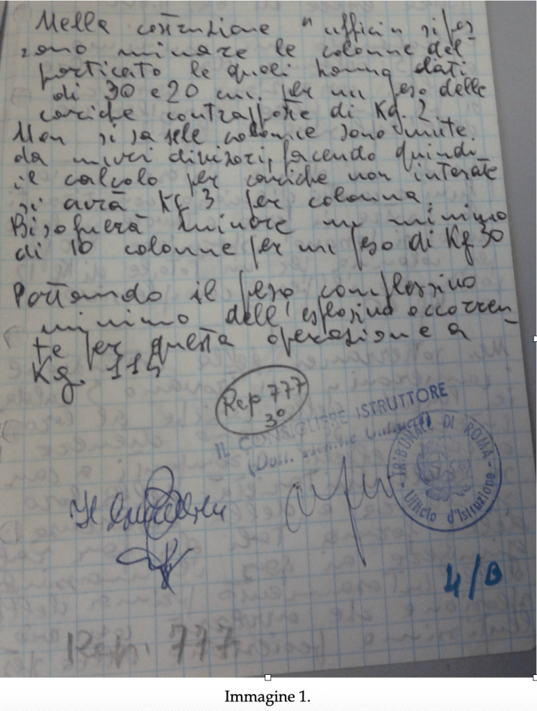 Questo sopra è il documento originale tratto dal sottoscritto presso l’archivio della Corte d’Assise di Roma (aula bunker di Rebibbia).