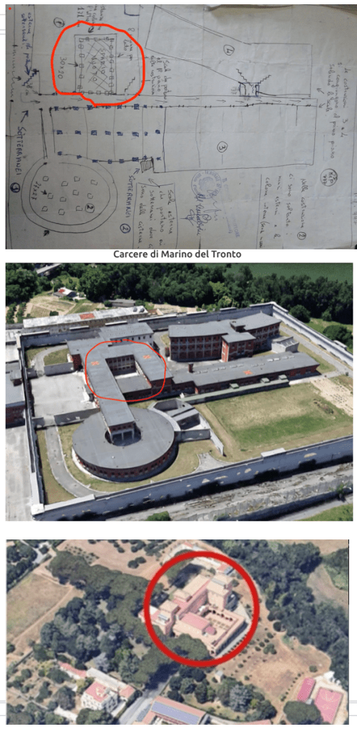 Riceviamo e volentieri pubblichiamo un contributo del ricercatore Gianremo Armeni che decostruisce implacabilmente l’ultimo scoop sul sequestro Moro realizzato dal giornalista di Rai news Federico Zatti e proposto da Bruno Vespa nella edizione di Porta a Porta del 13 maggio scorso. Secondo Zatti due disegni ritrovati nella base brigatista di via Gradoli a Roma proverebbero che il vero luogo dove fu custodito Moro, almeno nei primi momenti del sequestro, non fu via Montalcini ma un locale della Loyola univesity sito in via dei Massimi 114, a poca distanza da via Fani. Si tratta di un ennesimo clamoroso fake, come ci spiega dettagliatamente Armeni. Basta sovrapporre il disegno fatto dai Br con la piantina del carcere di massima sicurezza di Marino del Tronto per capire che lo schizzo raffigurava quella struttura carceraria in costruzione. Il comitato rivoluzionario marchigiano e la colonna romana erano in stretto contatto.Cconosco bene il carcere speciale di Marino del Tronto perché dopo essere stato ricondotto in Italia dalla Francia vi ho trascorso oltre quattro mesi in isolamento, dalla metà di settembre 2002 al gennaio 2003, salvo alcuni giorni durante le feste di fine anno, quando venni appoggiato provvisoriamente nella sezione circolare visibile nelle immagini, per permettere la riverniciatura della mia cella ridotta in pessime condizioni.