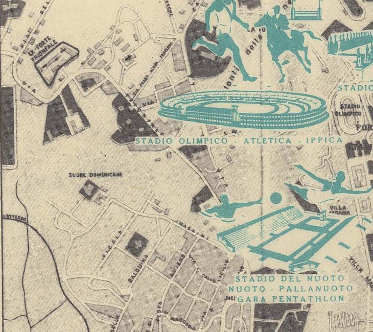 Una cartografia del 1960 (Frutaz, A.P., Le piante di Roma, Roma 1962) ci mostra l’esistenza della Casa del noviziato delle suore domenicane di santa Caterina da Siena, sito nell’attuale civico 114b di via dei Massimi. Come possiamo constatare non è ancora indicata la seconda struttura con la cupola e l’edificio a freccia nel quale si insediò nel 1978 la Loyola university. Struttura che venne realizzata dopo il 1960 e prima del 1970 perché in questa data era perfettamente terminata come prova il rilievo aereo che abbiamo mostrato.