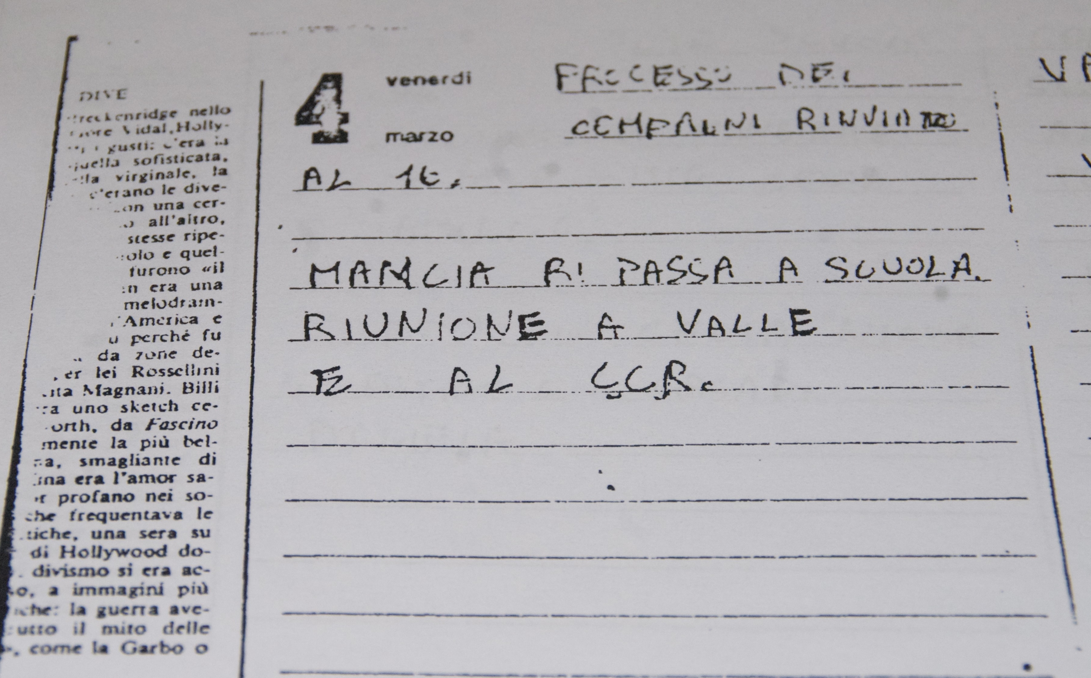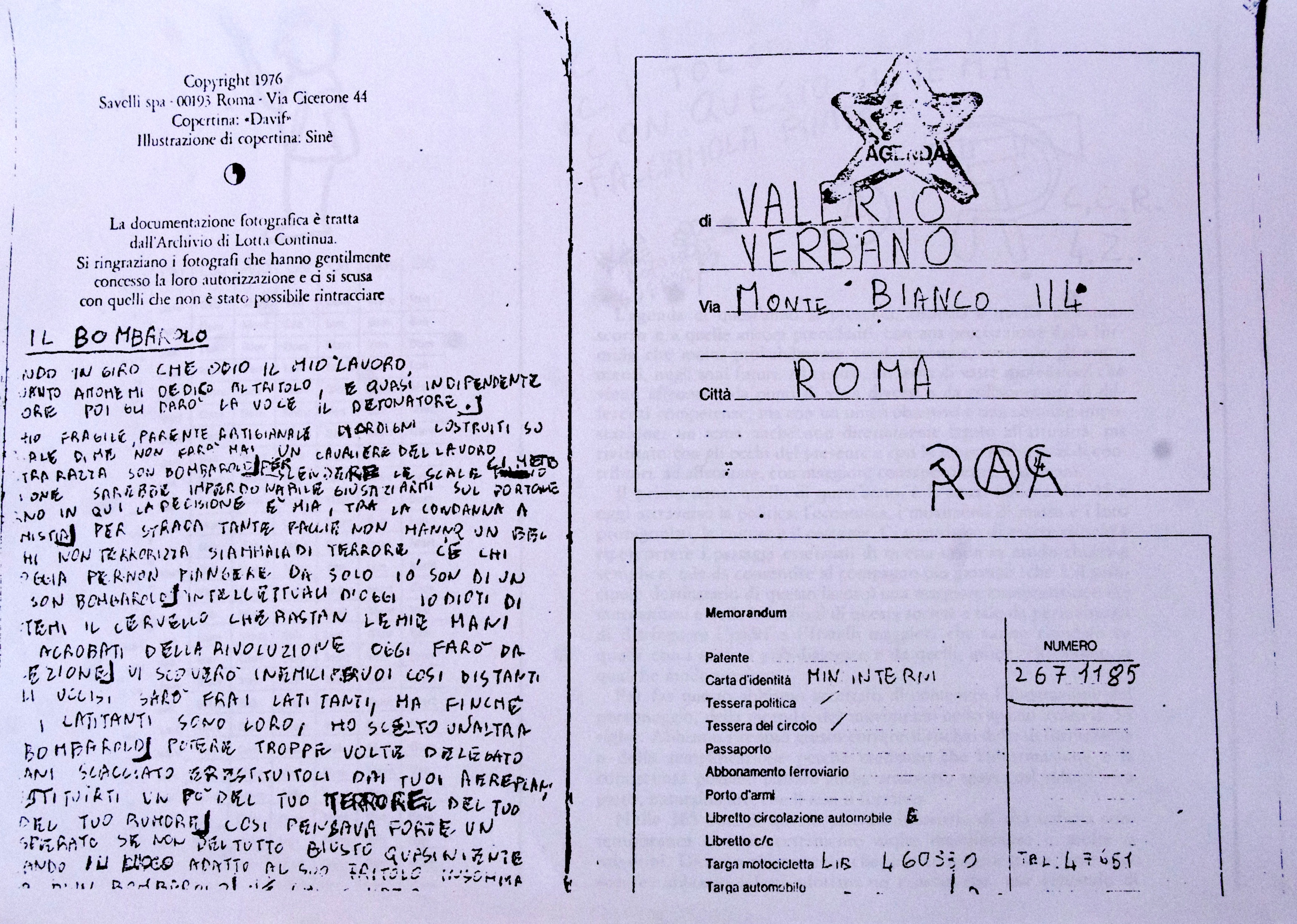 Riappare il dossier Verbano con l’agenda rossa del 1977