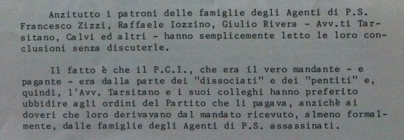 «Si è accennato alla diatriba con lo scrittore Roberto Saviano. All’inizio del 2011, come riportato sulla stampa e in internet (che ospita vari articoli al riguardo), si è verificata una schermaglia tra il Persichetti ed il suo editore da una parte, ed il Saviano dall’altra, nascente da affermazioni di quest’ultimo sul caso dell’omicidio di Giuseppe Impastato, affermazioni ritenute dalla controparte false o, quanto meno, superficiali. La vicenda è sfociata nella presentazione di una querela per diffamazione da parte del Saviano nei confronti del Persichetti e del suo editore. La Direzione dell’Istituto ne è stata informata formalmente dalla Polizia di Stato. Il 02.03.2011 il Persichetti, durante un colloquio col Direttore di Reparto riguardante proprio tale vicenda, è stato invitato a produrre gli articoli relativi alla querelle, al fine di avere un quadro della situazione; ha percepito come atteggiamento “censorio” la richiesta formulatagli dal dirigente e per tutta risposta gli ha detto chiaramente che gli scritti sono liberamente accessibili su internet e che non vedeva la necessità di doverli produrre lui. Si è pertanto ritenuto di dover informare dell’accaduto e dell’atteggiamento tenuto dal semilibero il Sig. Magistrato di Sorveglianza».