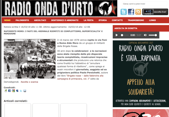 A quarant’anni di distanza nell’immaginario riprodotto dalle narrazioni complottiste la mattina del 16 marzo 1978 via Fani appare un luogo spettrale presidiato dai servizi segreti, un segmento di città privo di vita urbana dove si aggirano misteriose presenze. Eppure la documentazione storica in nostro possesso ci dice che la realtà di quella mattina è molto diversa. Intorno alle nove, in quel piccolo quadrante residenziale di Roma transitavano numerosi passanti e in strada circolavano diversi veicoli, tanto che alle varie fasi dell’azione brigatista, avvicinamento, assalto e sganciamento, assistono da posizioni diverse più di trenta testimoni. Nella stragrande maggioranza confermano la ricostruzione fatta dai militanti delle Brigate rosse che vi parteciparono. Di seguito il racconto di quella mattina ripreso dal capitolo 6 del libro, Brigate rosse, dalle fabbriche alla campagna di primavera, Derviveapprodi, marzo 2017