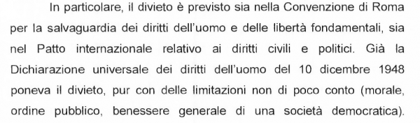 Queste due definizioni riprendono in modo secco la formulazione presente all’articolo 5 della Dichiarazione universale dei diritti dell’uomo del 10 dicembre 1948: