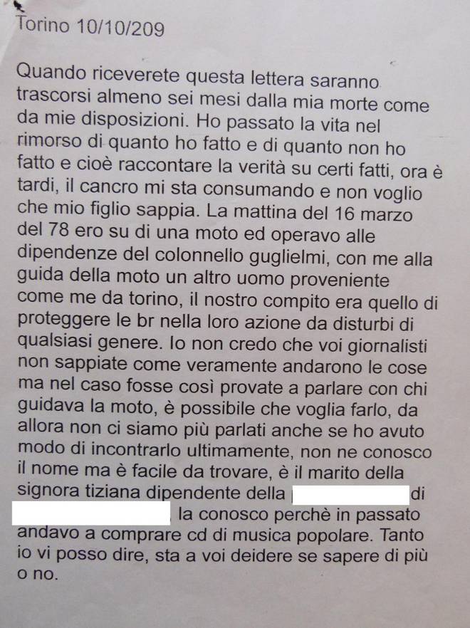 Enrico Rossi, con un passato alla Digos di Torino, denunciava resistenze nelle indagini su una lettera anonima nella quale si raccontava di due agenti dei servizi presenti in via Fani, a cavallo di una moto Honda, al momento del rapimento del dirigente democristiano. I due – sempre secondo l’anonimo – alle dirette dipendenze di un colonnello del Sismi avrebbero dato manforte al nucleo brigatista.