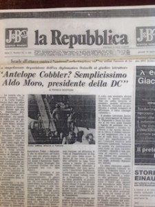 «Antelope Cobbler? Semplicissimo è Aldo Moro presidente della Dc», la Repubblica, 16 marzo 1978, p. 3, Francesco Scottoni. Questa informazione apparve anche su altri quotidiani come il Corriere della sera, la Stampa e il Giorno. Il nome in codice «Anteelope», secondo le rivelazioni americane, indicava un presidente del Consiglio negli anni dal 1965 al 1970, coinvolgendo dunque, oltre a Moro (1963-1968), il governo cosiddetto balneare di Giovanni Leone (giugno-novembre 1968) e quello di Mariano Rumor (dicembre 1968-luglio 1970). I tre smentirono ogni coinvolgimento e il 29 aprile l’ambasciatore statunitense notò che, nel farlo, avevano dato l’impressione di ritenersi colpevoli a vicenda; C. Belci e G. Bodrato, 1978. Moro, la Dc, il terrorismo, cit., p. 71.