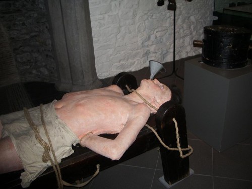 La tortura dell’acqua e sale (waterboarding), conosciuta nelle questure italiane anche con il nome della “cassetta”