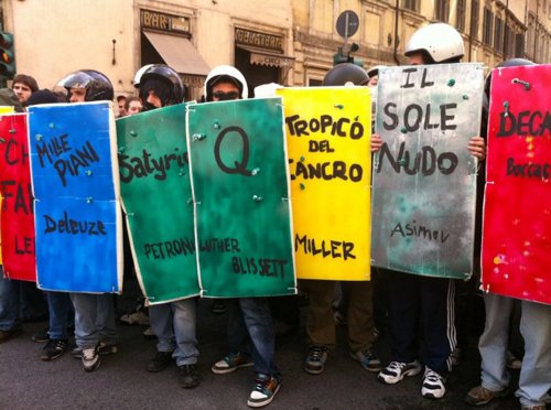 Mario Martucci, uno dei responsabili dei “Katanga”, il famigerato servizio d’ordine del Movimento Studentesco di Milano, poi divenuto Mls, noto negli anni 70 per la sua particolare vocazione a svolgere la funzione di poliziotti dei cortei sempre pronti ad aggredire e pestare tutte le realtà politiche più radicali del movimento presenti sulla piazza milanese, intervistato dal Corriere della sera invita gli studenti a costituire un servizio d’ordine – si badi bene – non per difendere i cortei da aggressioni esterne provenienti dalla polizia o da gruppi di estrema destra, o ancora per garantire i propri spazi di agibilità politica, ma per reprimere la pluralità delle voci interne al movimento stesso. La vicenda è destinata inevitabilmente ad aprire un dibattito sulle forme d’organizzazione della politica e delle manifestazioni per superare quelle logiche che hanno condotto all’episodio di martedì, soprattutto a quell’inquietante riflesso d’ordine che di fronte ad una situazione imprevista (e che per giunta si sarebbe poi dimostrata la novità e il punto di forza dell’intera giornata) si è tradotto un una reazione repressiva.