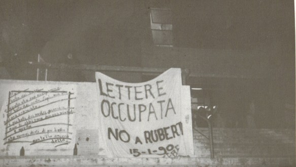 sociale che aveva giustificato l’esorbitanza del ruolo da loro assunto, il forte potere di supplenza acquisito. Orfani della lotta armata, nostalgici di quel conflitto, come i giapponesi sperduti nelle isole del Pacifico, esercitarono il massimo potere d’interdizione e di minaccia che era loro possibile. Ne sanno qualcosa quei militanti usciti temporaneamente dal carcere sul finire degli anni 80, dopo lunghe detenzioni preventive, e che tentarono di mettere in pratica la discontinuità politica annunciata. A metà del gennaio 1990 erano state avviate numerose occupazioni universitarie, fenomeno che si estese progressivamente a tutto il paese per circa tre mesi, dando vita al primo movimento del genere dopo la fine degli anni 70. Una coincidenza che colpì l’immaginario di molti commentatori e attori istituzionali, i quali vi avevano intravisto il rischio di una riedizione dei fatti del 1977. Una previsione più che azzardata, senza dubbio, ma estremamente rivelatrice dei timori di chi guardava a quegli avvenimenti. D’altronde la simbolicità dei luoghi e di alcuni riti sembrava rievocare la gioventù di molti giornalisti che scrivevano su quegli eventi. Contenuti e modalità erano, in realtà, profondamente differenti, ma l’evocazione del passato tornava a ogni passo realizzato da quell’acerbo movimento, molto poco ideologizzato, con riferimenti culturali confusi e che stentava ad elaborare richieste precise.